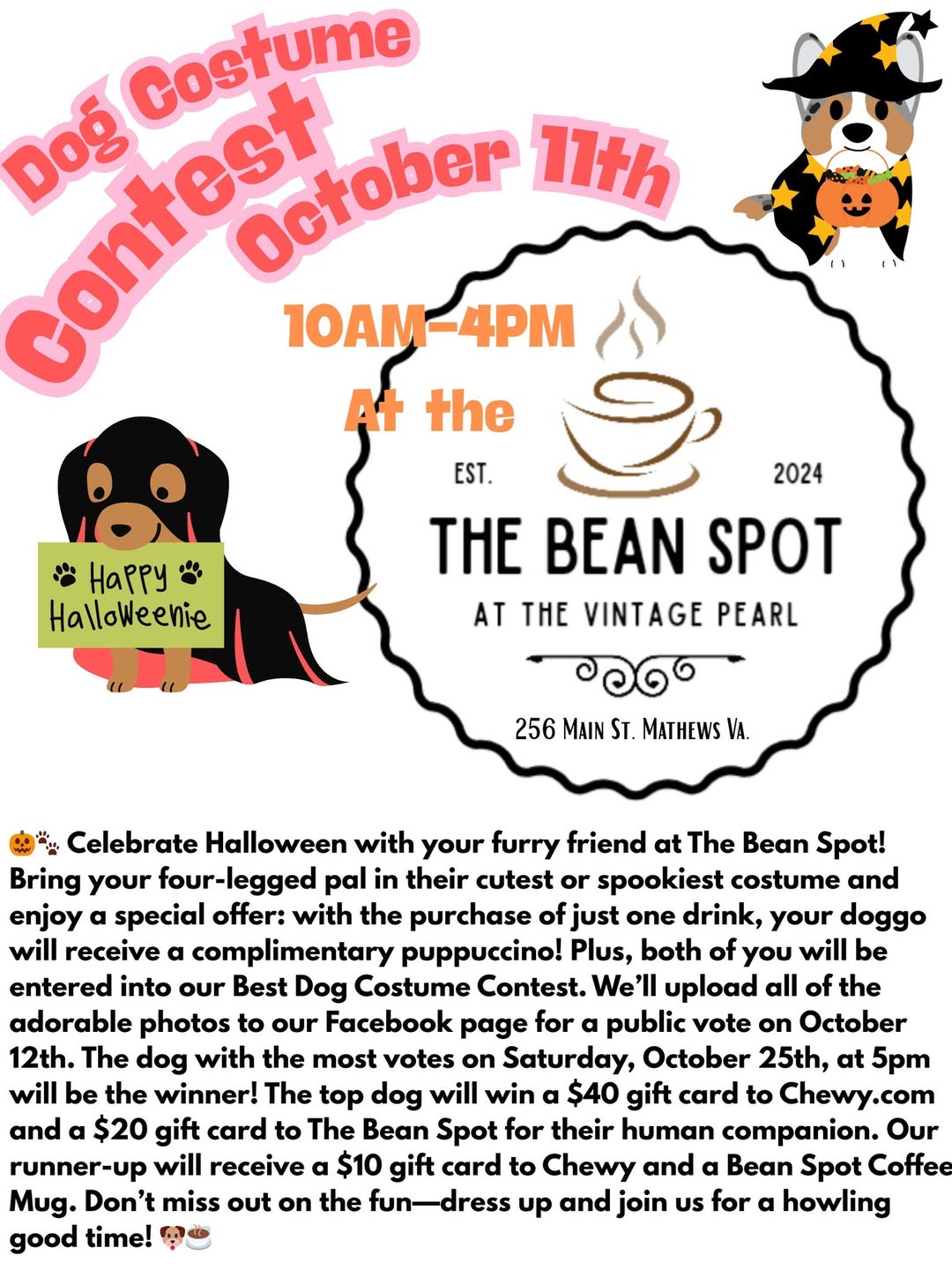 Big announcement: Saturday October 11th bring your four legged friends in wearing their halloween costumes. With a purchase of just one drink will give you a puppicino for your doggy and we will take a picture to post online for everyone to vote for best dog costume.