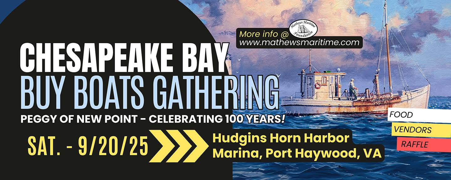 The Mathews Maritime Museum’s Maritime Heritage Day will take place at Hudgins Horn Harbor Marina on Saturday, September 20 where we will celebrate the deck boats of the Chesapeake Bay. In particular; Peggy of New Point, Nellie Crockett, and the East Hampton. All turned 100 this year.